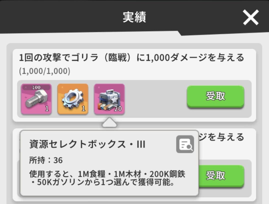 「資源セレクトボックスⅢ」はどの資源にするか選択可能で、食料と木材なら1つ1Mもらえるのでかなりデカイです!